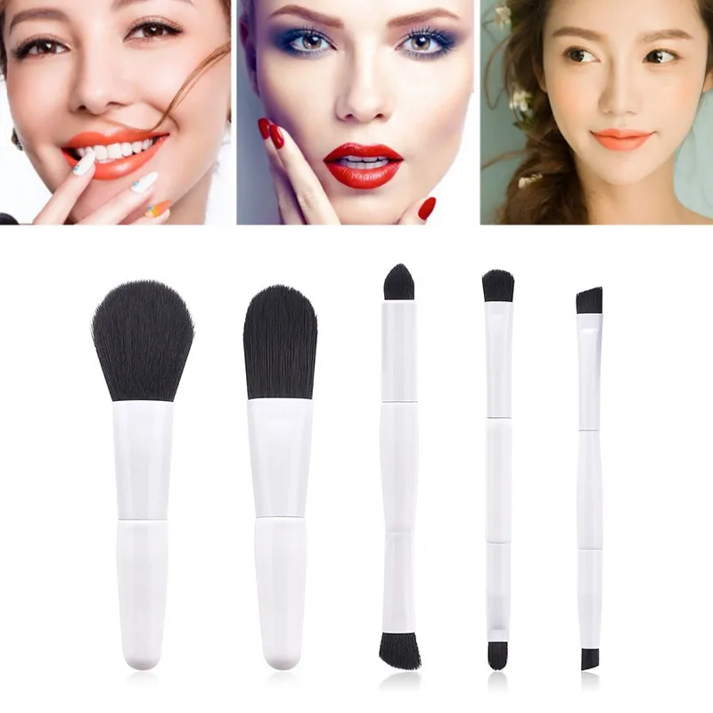 Sale 5pcs Makeup Brush Set Double-end Eyeshadow Blush Cosmetic Bag Mini Loose Powder Foundation Brush